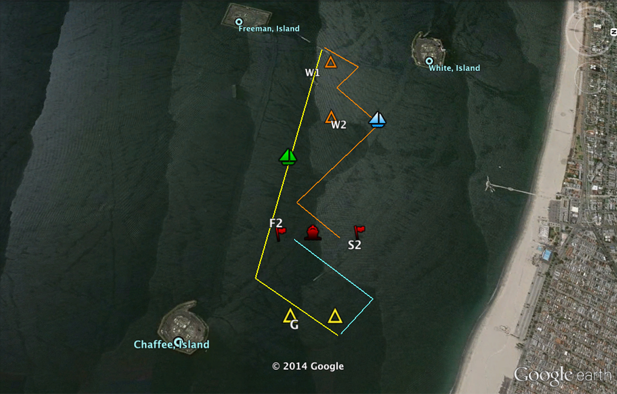 The Ocean B course was set between Islands Chafee and Freeman. The Shields class had their starting sequence with the Mercury 18 fleet, but would be scored separately.